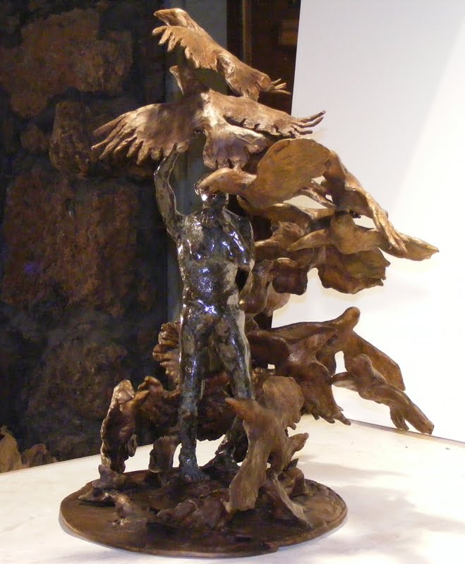 Anyway, I focused much more on acquiring foundry skills this semester. These pictures are of a maquette I am working on of Lucy surrounded by a flock of birds. Right now she is half size. At her full size she stands 42 inches tall.